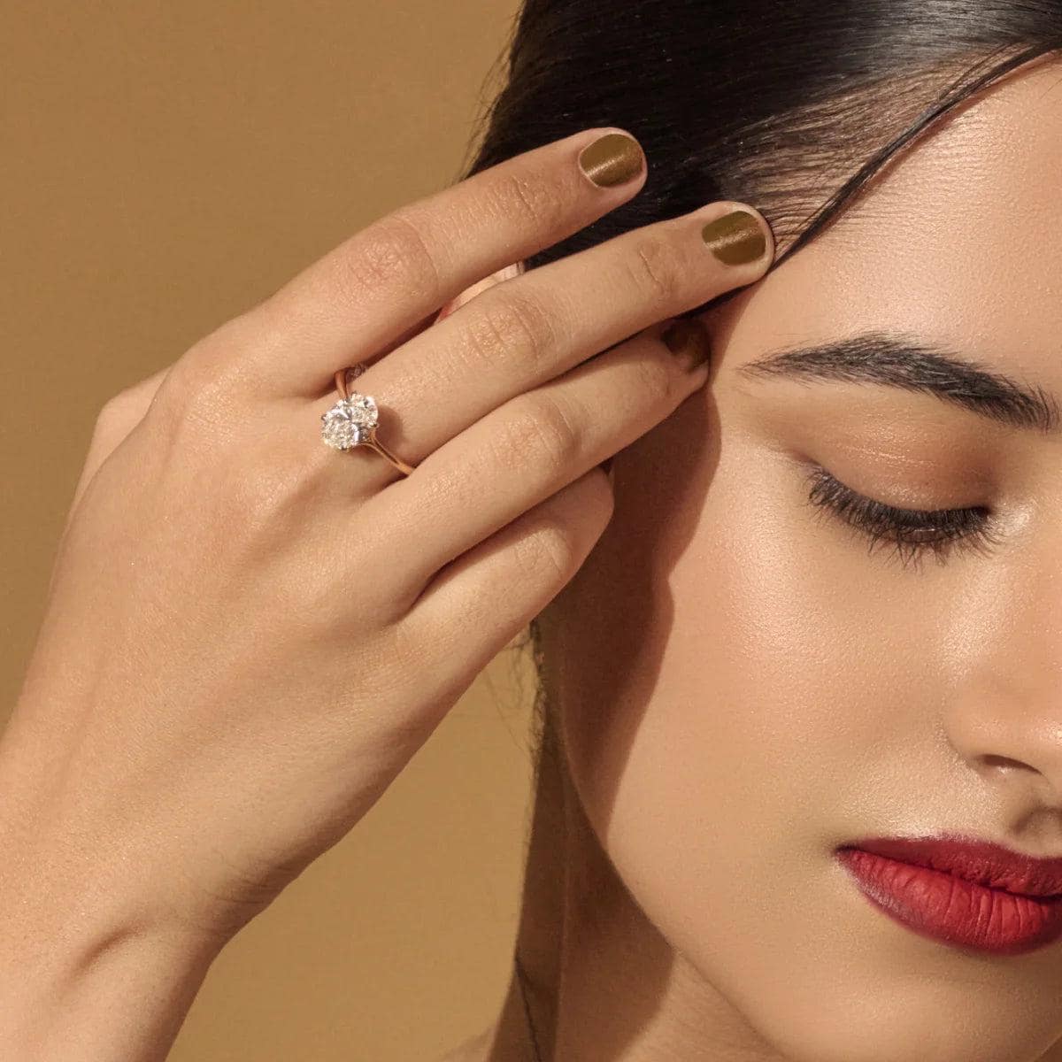 Oval Cut Real Lab Grown Diamond Ring, Unique Cluster Engagement Ring, Long Diamond Wedding Ring for Her, Genuine Lab Created Diamond Vintage Ring Gifts for Her, Anniversary Gift for Wife, Man Made Diamond Ring, Conflict Free Diamond Ring, Eco-Friendly Diamond Ring, 100% Handmade Diamond Jewellery