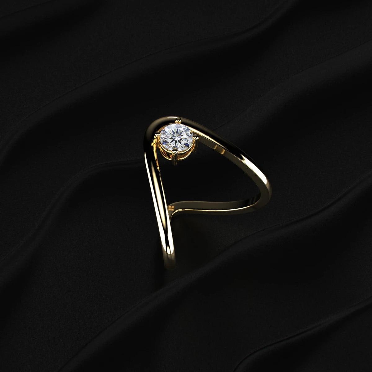 Round Cut Lab Grown Diamond Engagement Ring, V Shape Open Shank Solitaire Ring, 14K Solid Gold Modern Bridal Ring, Anniversary Gift
