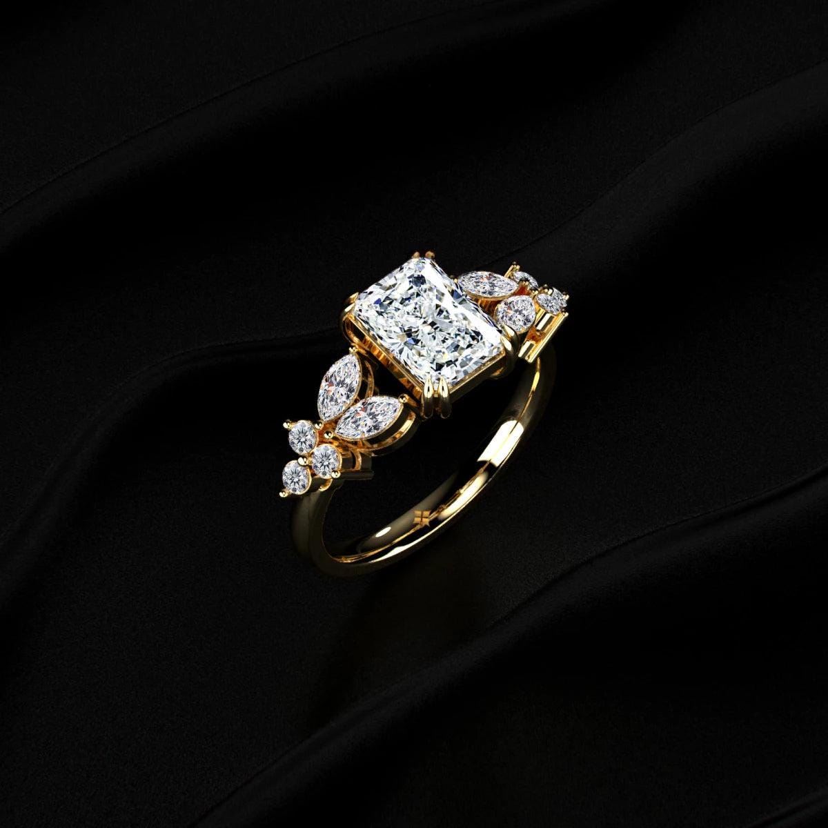 Radiant Cut Real Lab Grown Diamond Ring, Unique Cluster Engagement Ring, Long Diamond Wedding Ring for Her, Genuine Lab Created Diamond Vintage Ring Gifts for Her, Anniversary Gift for Wife, Man Made Diamond Ring, Conflict Free Diamond Ring, Eco-Friendly Diamond Ring, 100% Handmade Diamond Jewellery