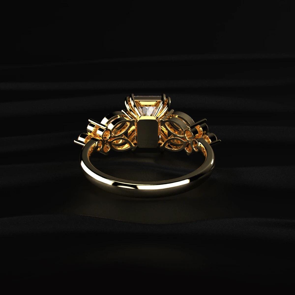 Radiant Cut Lab Grown Diamond Engagement Ring, Marquise Leaf Diamond Ring, Nature Inspired Radiant Solitaire Ring, 14K Gold Bridal Ring