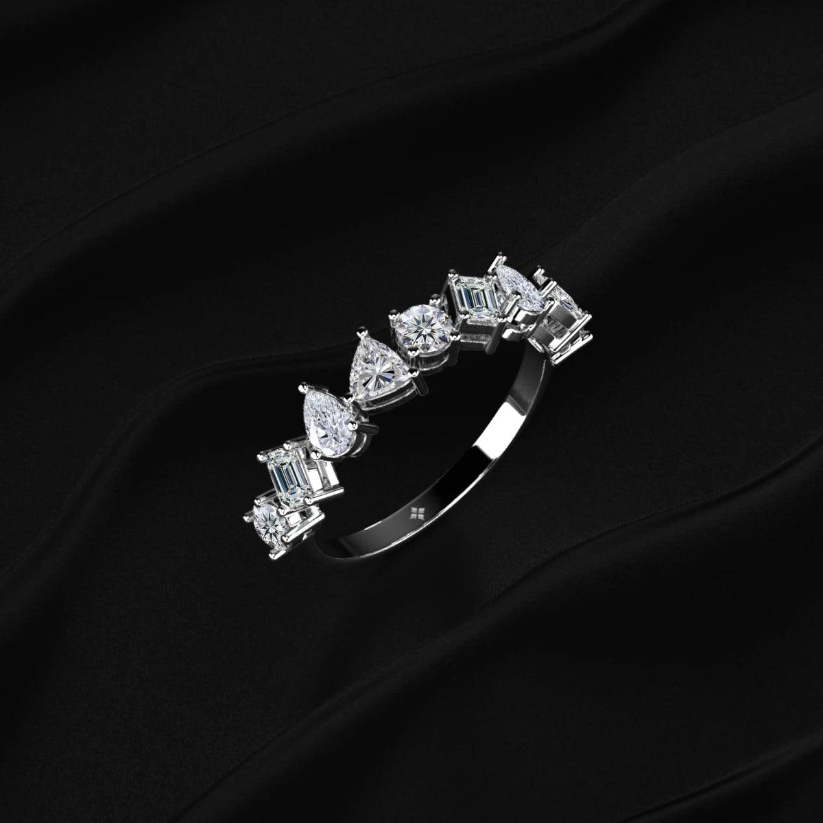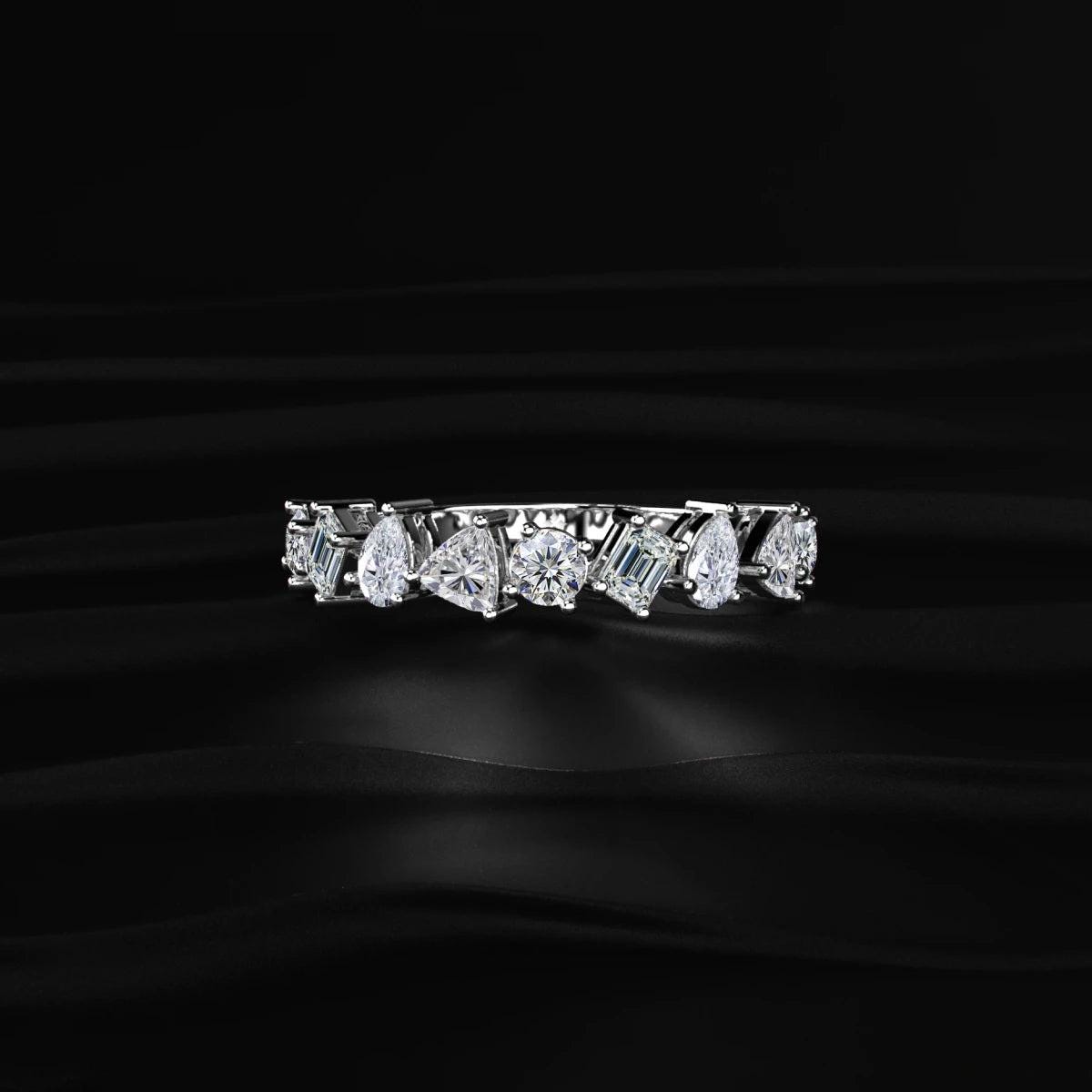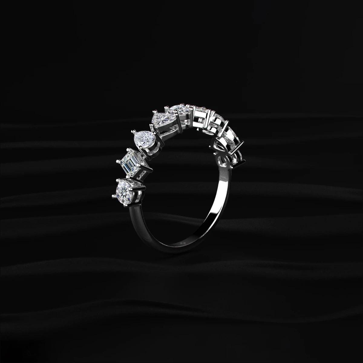 Mixed Shape Lab Grown Diamond Wedding Band, Pear Round Emerald Diamond Eternity Ring, Unique Diamond Anniversary Band, 14K Gold Bridal Ring