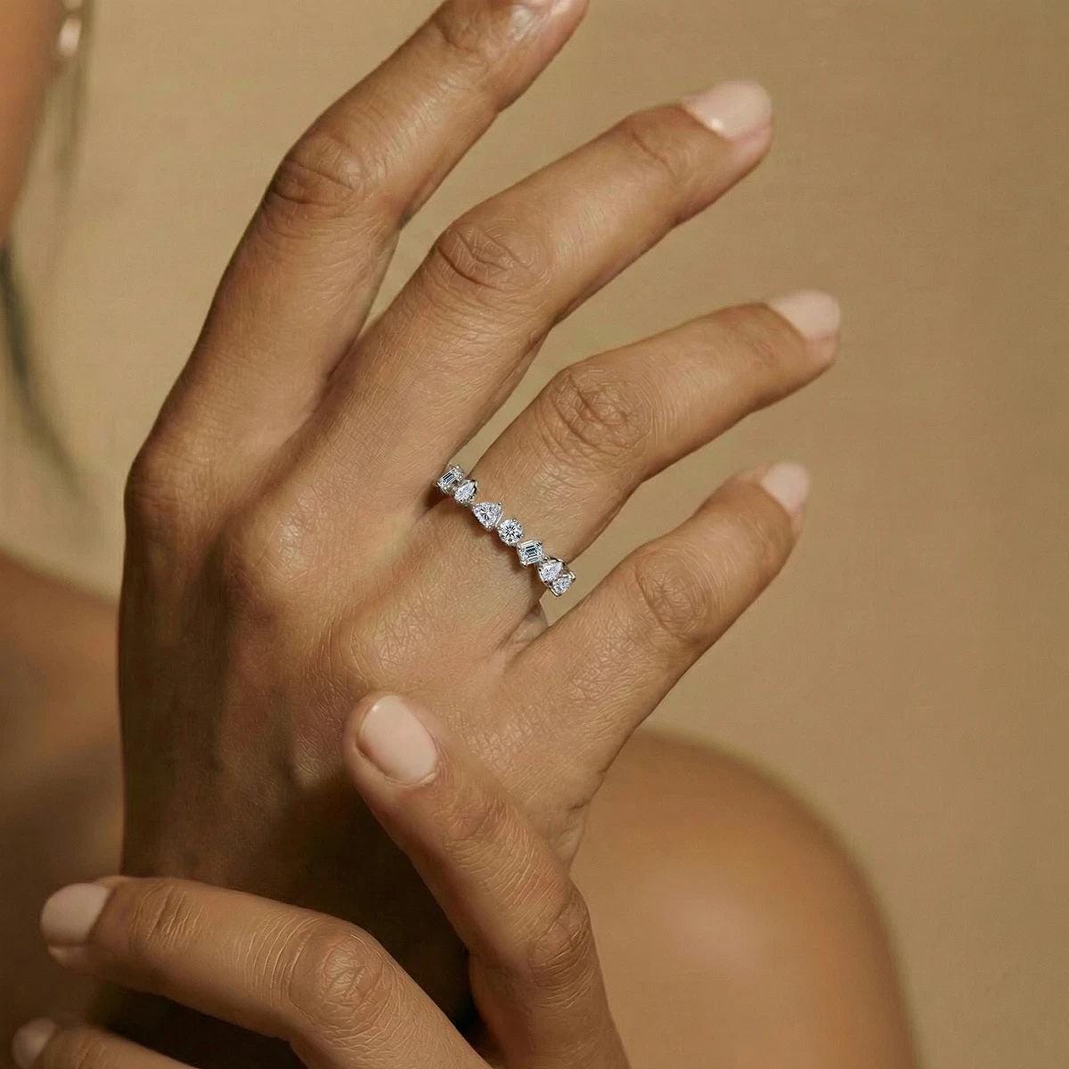 mixed Cut Lab Grown Diamond Half Eternity Band, Diamond Wedding Band, Anniversary Ring, Stackable Bridal Ring, 14K Gold Diamond Band
