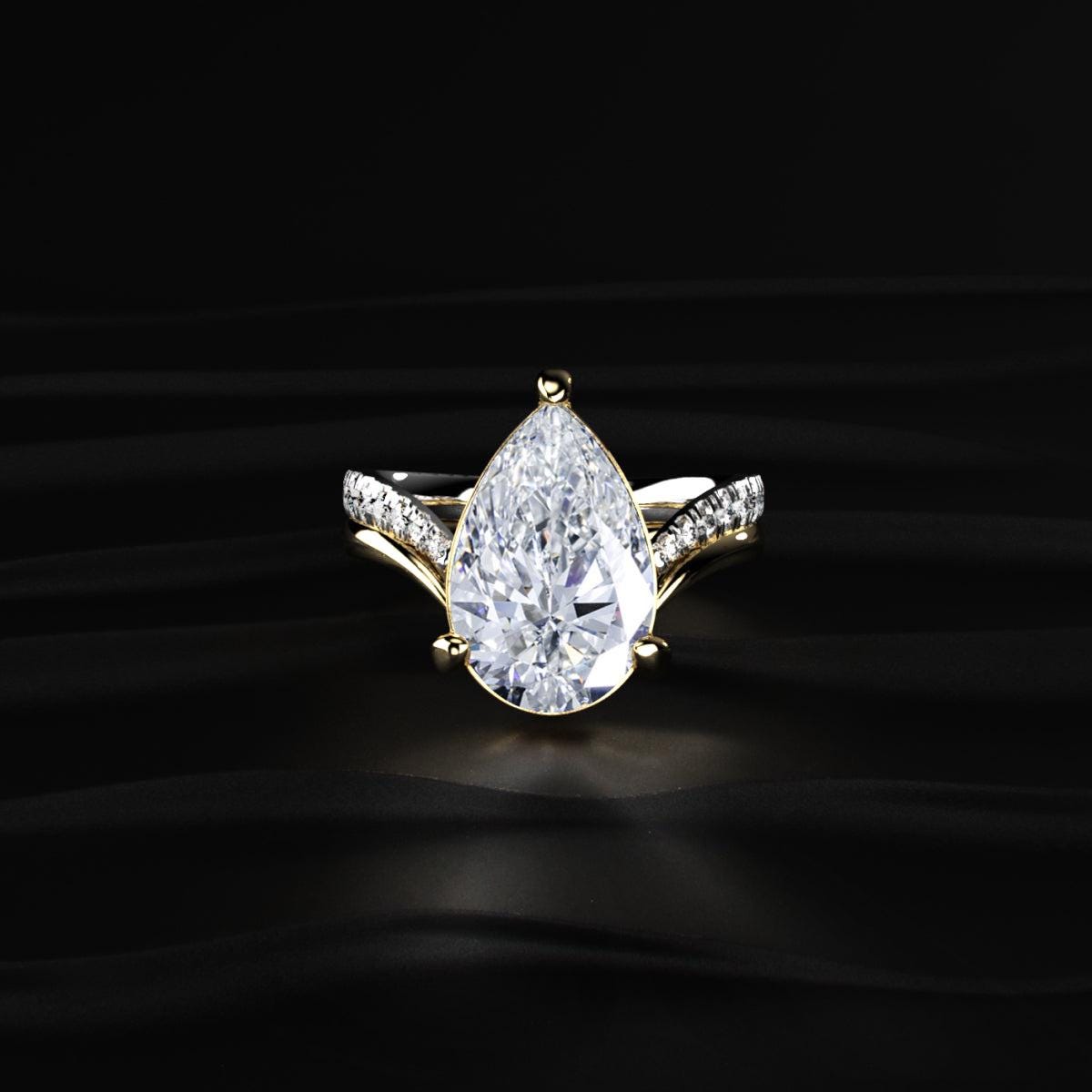 5.00CT Pear Cut Lab Grown Diamond Bridal Ring Set, Split Shank Pave Engagement Ring, 2PCS Wedding Ring Set, Two Tone Gold Anniversary Set