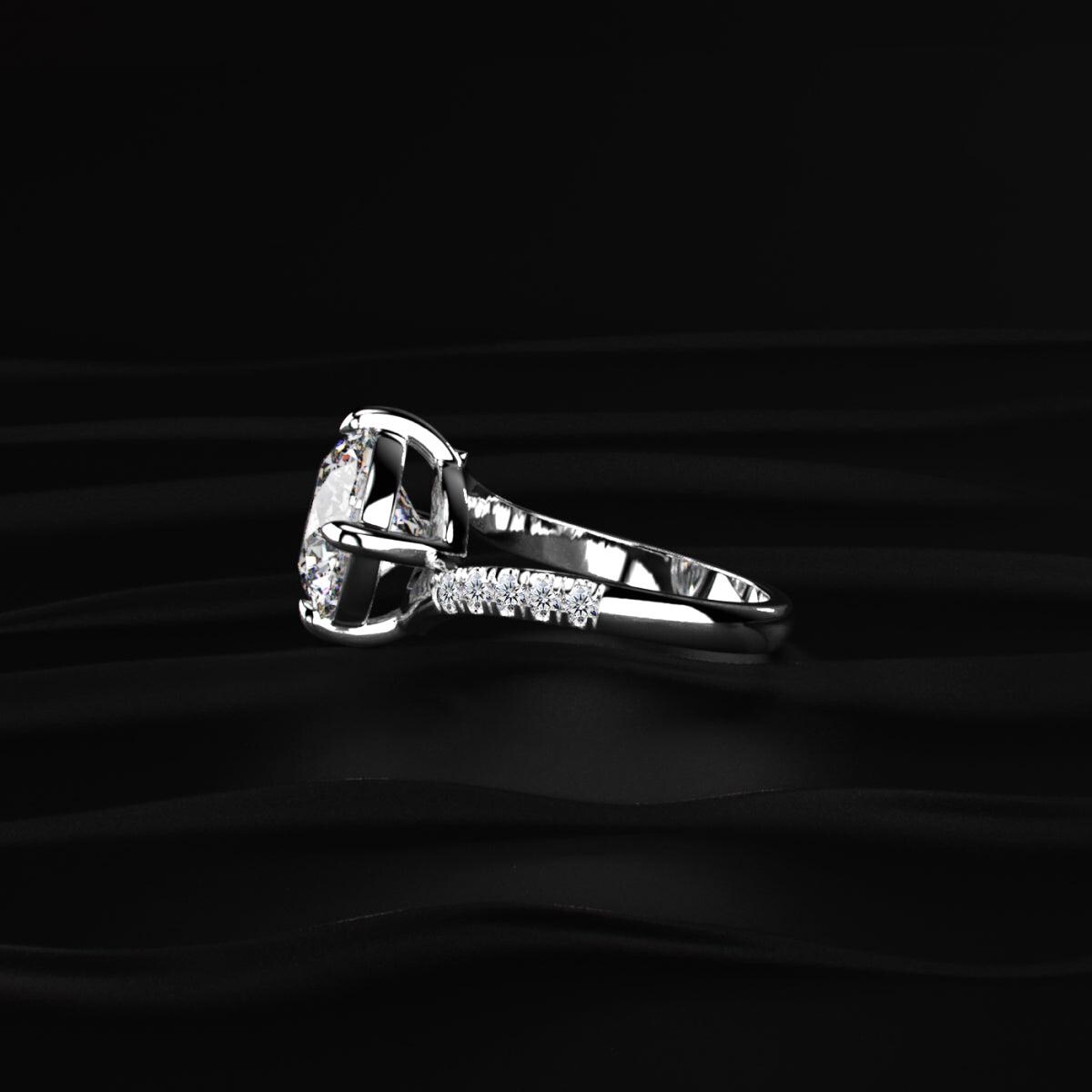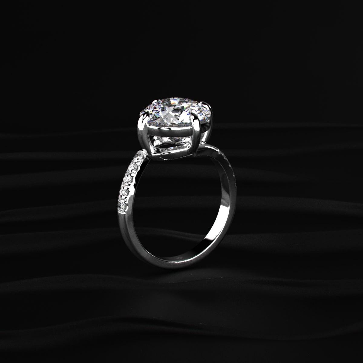 Round Cut Lab Grown Diamond Engagement Ring, Pave Band Diamond Ring, Hidden Halo Style Solitaire Ring, White Gold Bridal Ring Gift