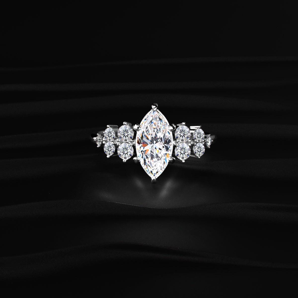 Marquise Cut Real Lab Grown Diamond Ring, Unique Cluster Engagement Ring, Long Diamond Wedding Ring for Her, Genuine Lab Created Diamond Vintage Ring Gifts for Her, Anniversary Gift for Wife, Man Made Diamond Ring, Conflict Free Diamond Ring, Eco-Friendly Diamond Ring, 100% Handmade Diamond Jewellery