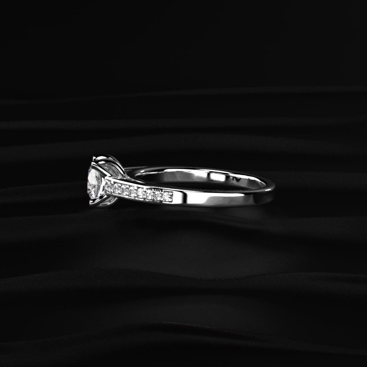 Round Cut Lab Grown Diamond Engagement Ring, Solitaire Diamond Ring with Pave Band, Classic White Gold Bridal Ring Anniversary Gift