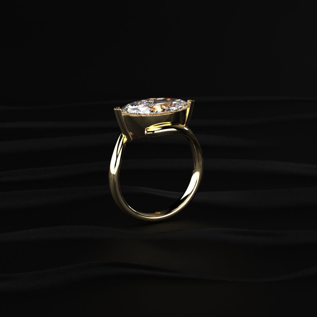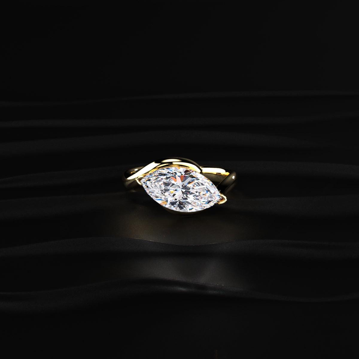 Marquise Cut Lab Grown Diamond Engagement Ring, Bezel Set Marquise Diamond Ring, Unique Gold Solitaire Ring, Modern Bridal Ring Gift