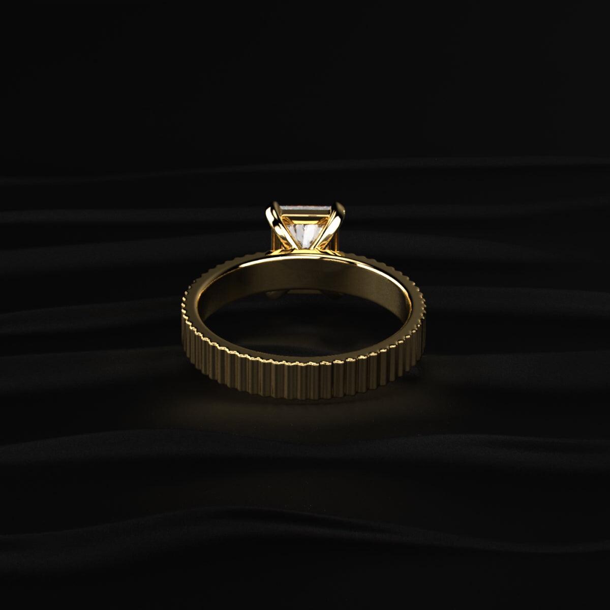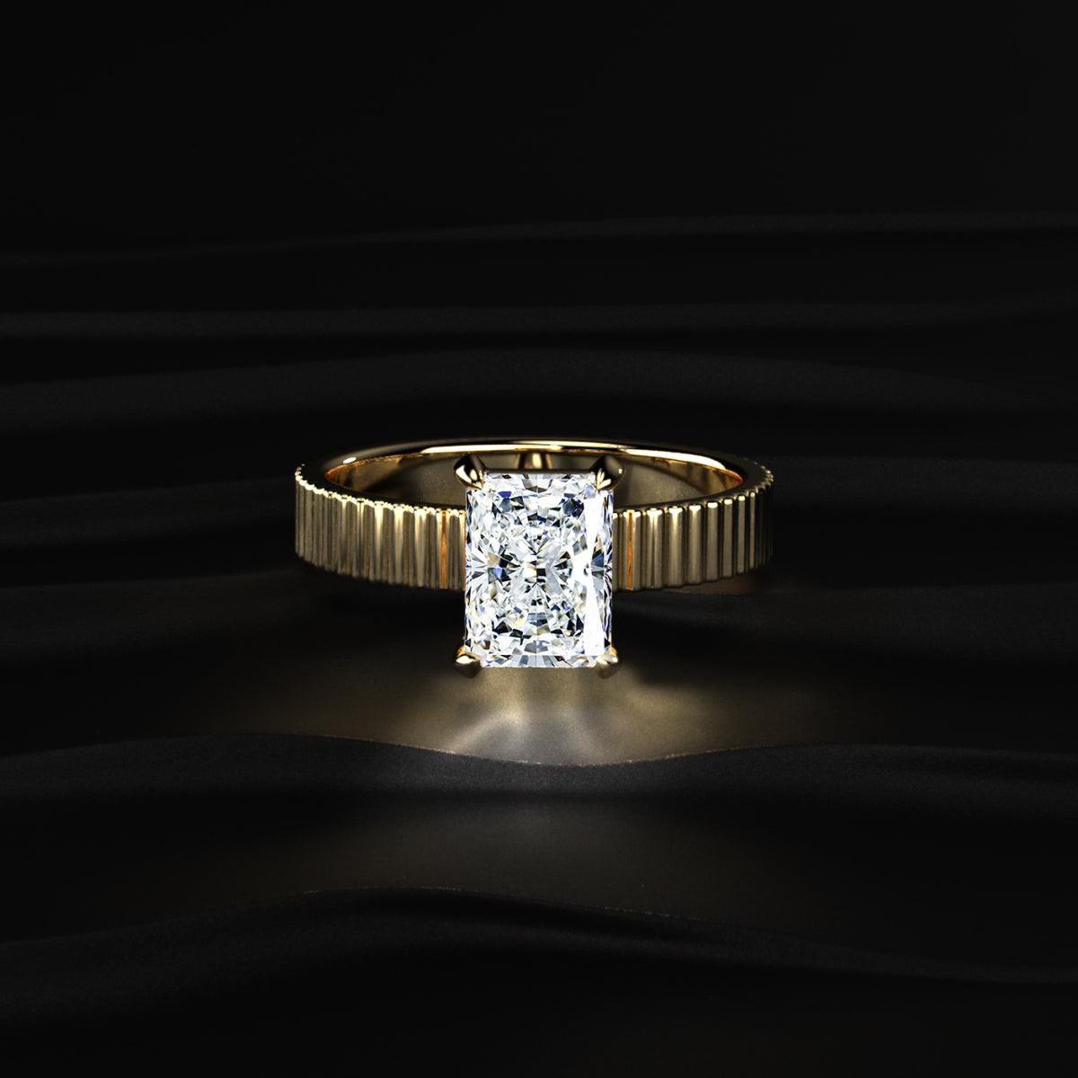 Radiant Cut Lab Grown Diamond Engagement Ring, Ribbed Band Gold Ring, Unique Vintage Style Diamond Ring, Luxury Solitaire Ring Gift