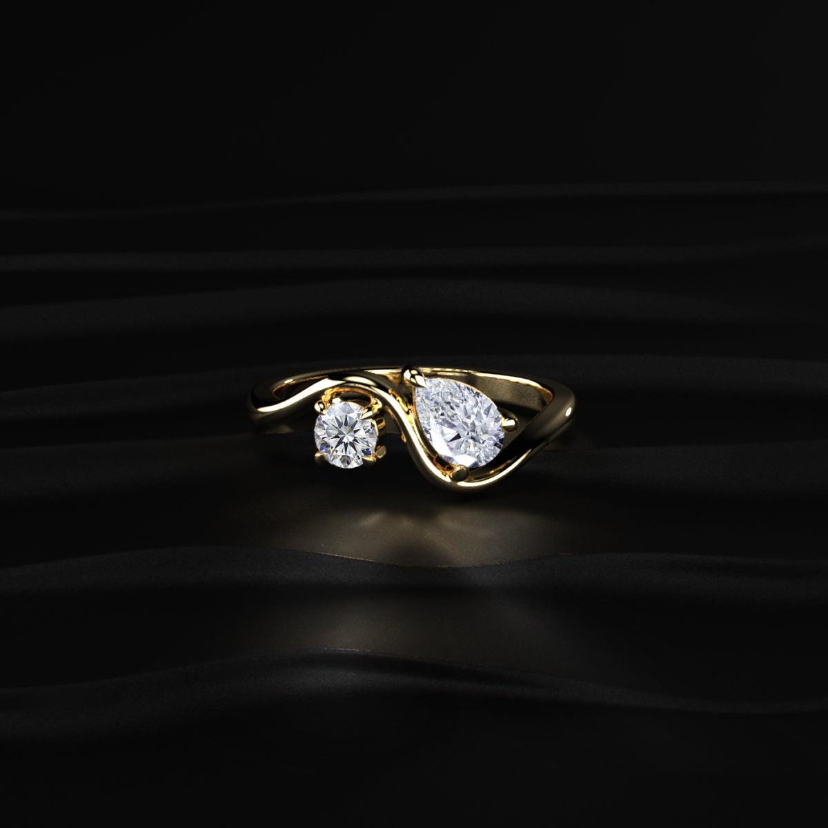 โจ Fall in love with this beautifully crafted Toi Et Moi Diamond Ring, featuring a graceful curved design with pear and round cut diamonds.