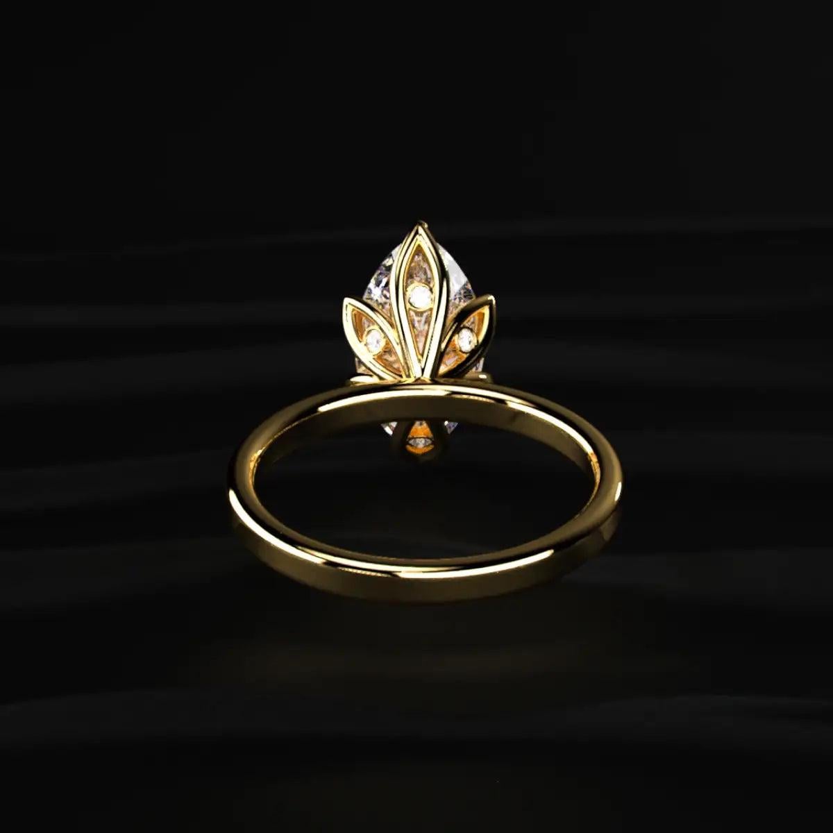 Marquise Cut Diamond Engagement Ring, Lab Grown Diamond Ring, Solitaire Gold Ring, Hidden Floral Detail Ring, Unique Bridal Ring