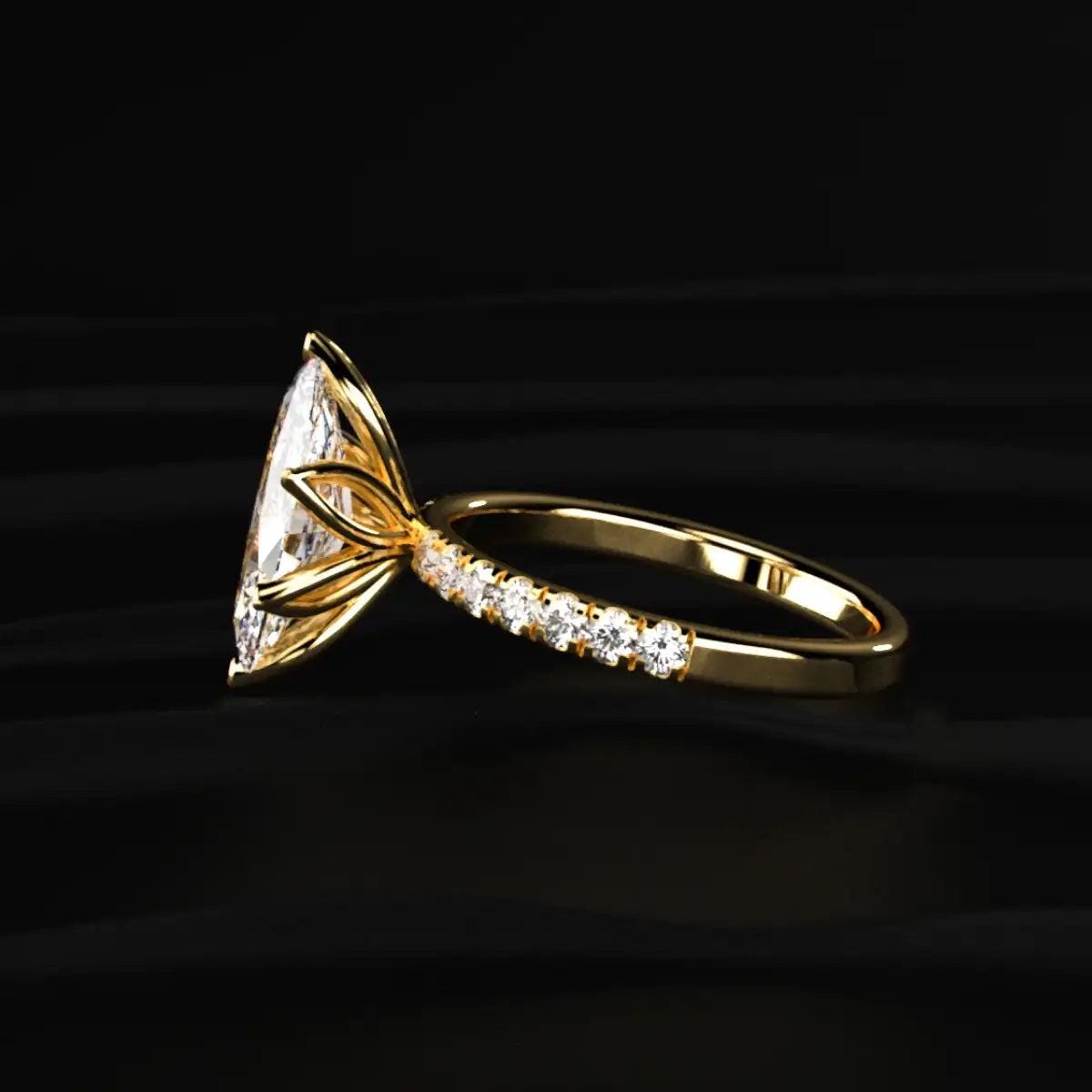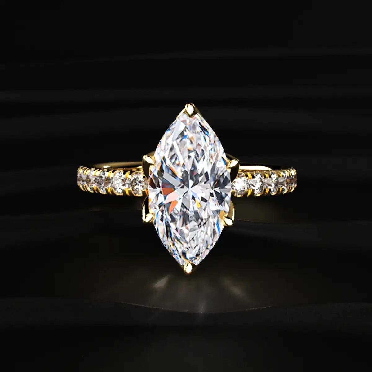 marquise diamond ring, marquise engagement ring, pave band diamond ring, lab grown diamond ring, gold engagement ring, hidden gallery ring, luxury bridal ring, anniversary gift ring, unique engagement ring, fine jewelry ring
