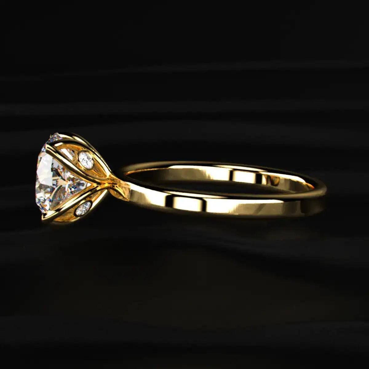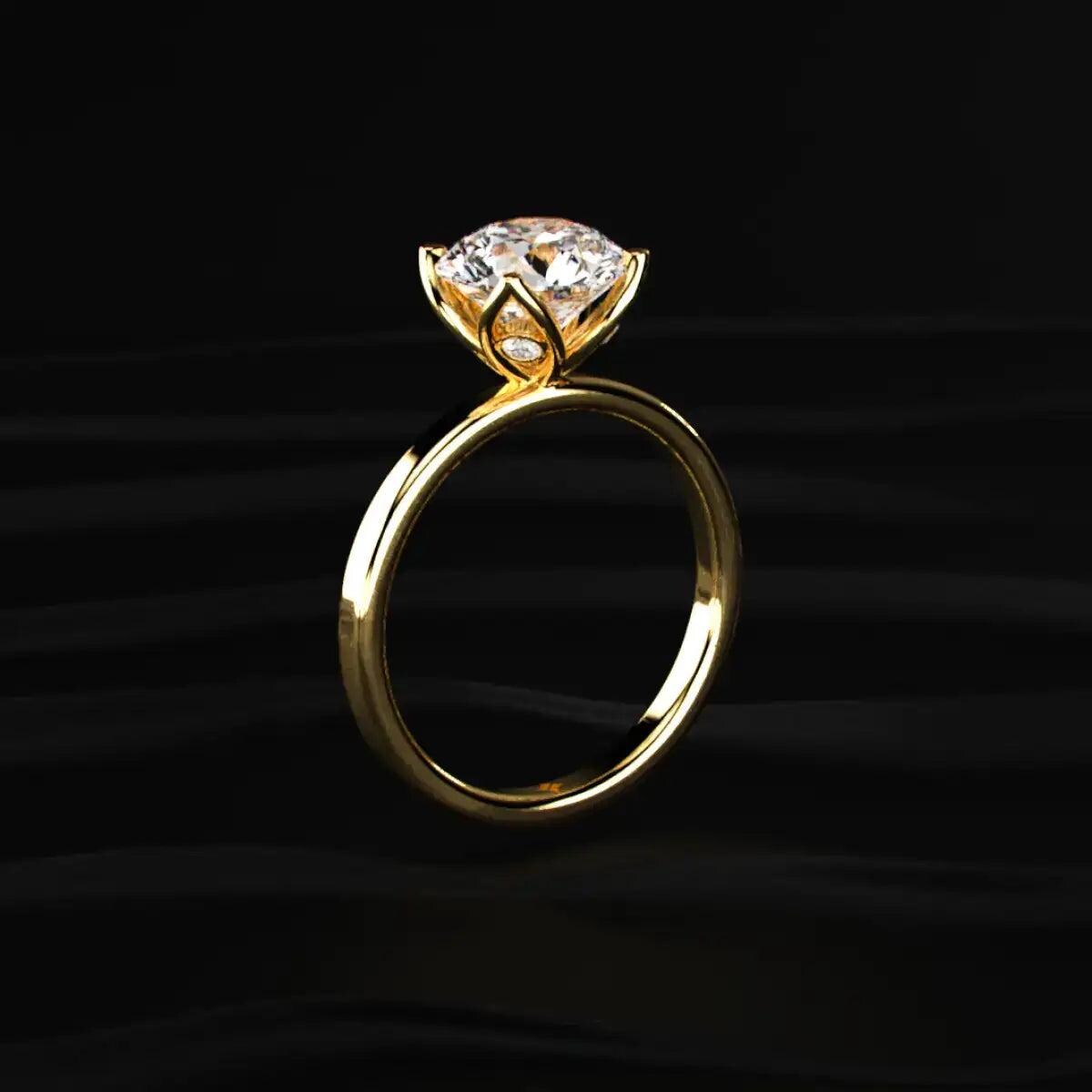 Round Cut Diamond Engagement Ring, Solitaire Ring, Hidden Diamond Gallery Ring, Lab Grown Diamond Ring, Gold Minimal Ring
