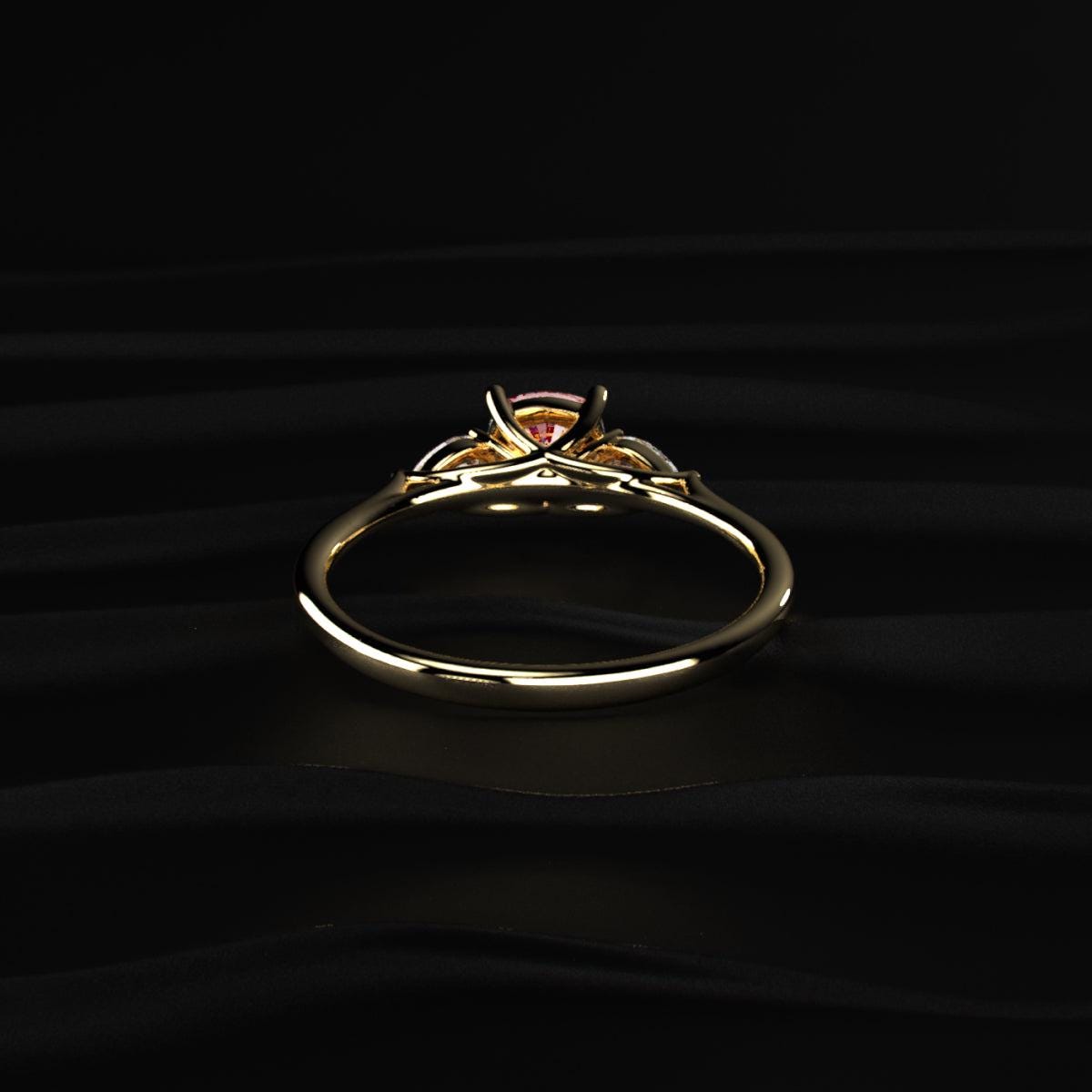 Pink Cushion Cut Engagement Ring, Lab Grown Diamond Ring, Three Stone Ring, Pear Side Stone Ring, Gold Bridal Ring Gift