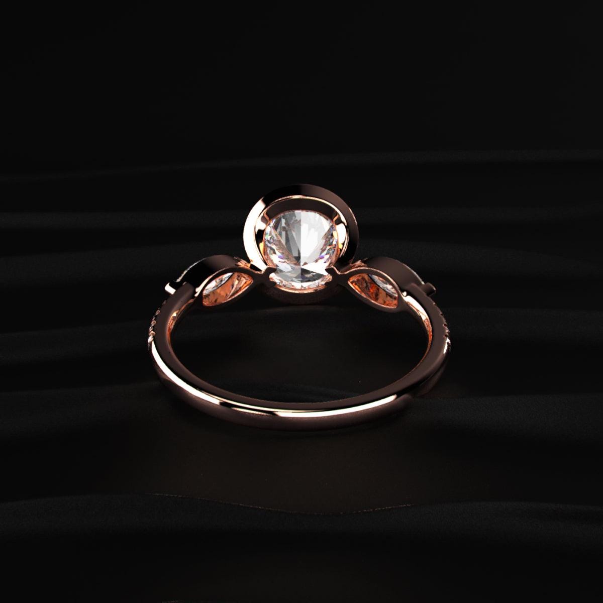 Round Bezel Set Diamond Ring with Marquise Side Stones, Lab Grown Diamond Engagement Ring, Leaf Style Gold Ring, Unique Bridal Ring