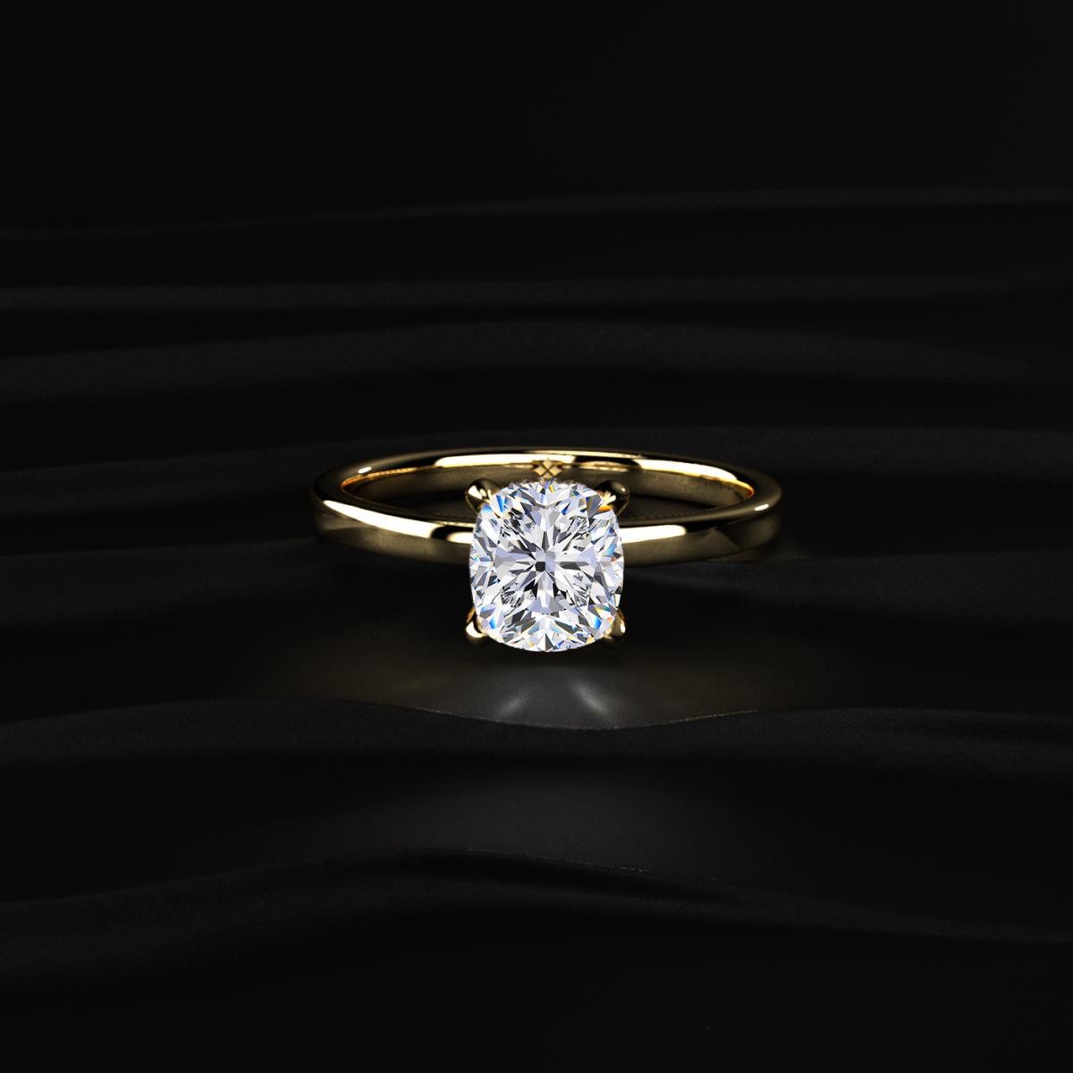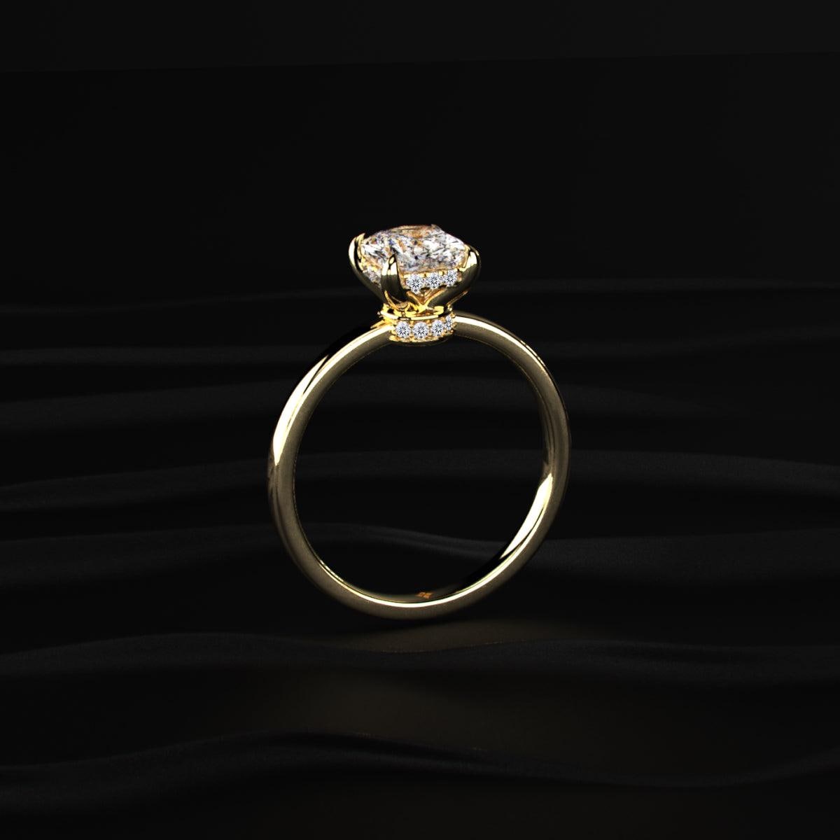 cushion cut engagement ring, 2ct cushion diamond ring, lab grown diamond ring, hidden halo diamond ring, cushion solitaire ring, square diamond ring, modern engagement ring, bridal jewelry ring