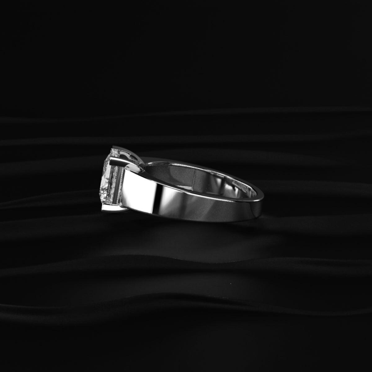 The clean and structured band enhances the diamond’s geometric beauty, creating a powerful and masculine look. Crafted with precision, this ring offers both luxury and durability, perfect for everyday wear.