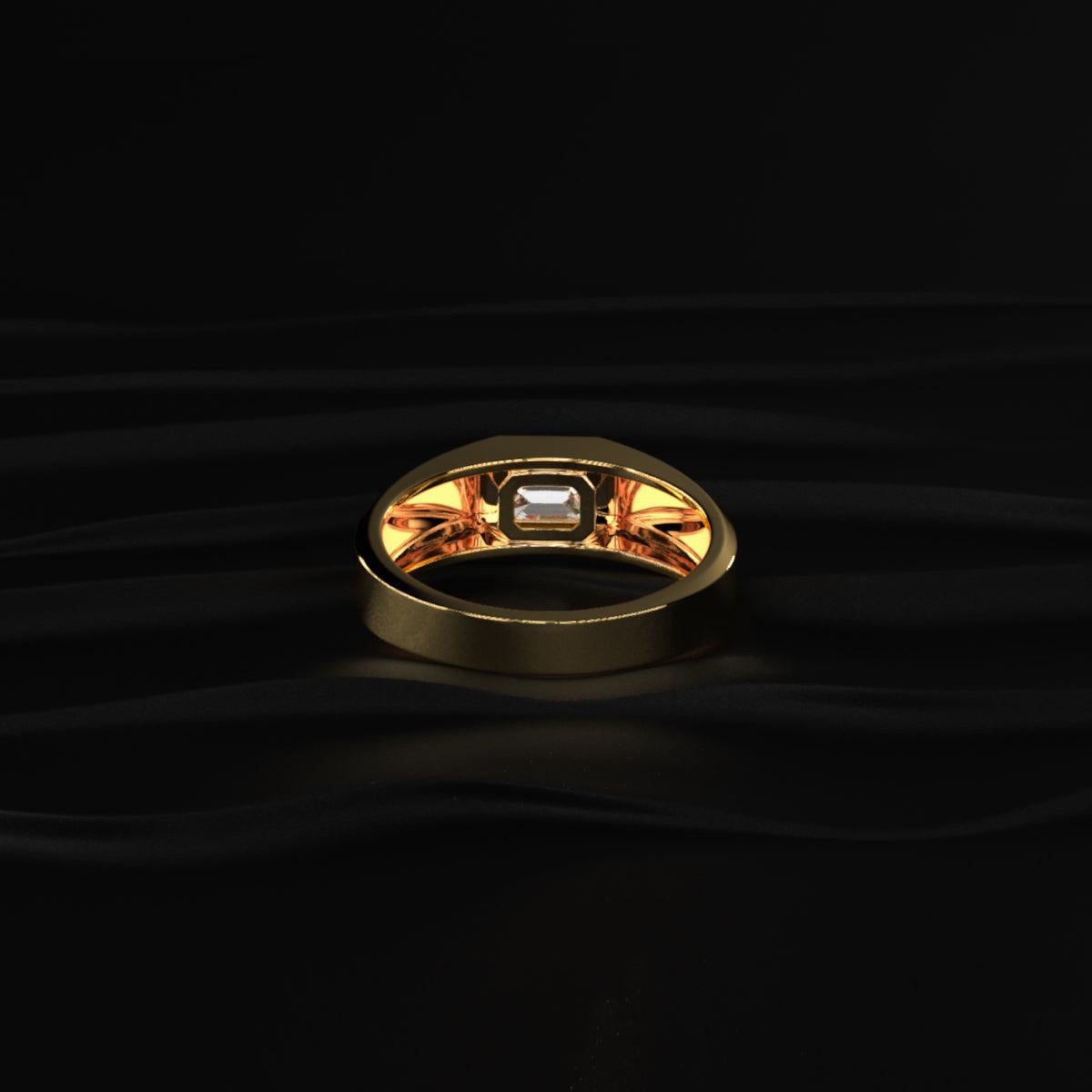 emerald cut mens ring, bezel set diamond ring mens, bold mens diamond ring, luxury statement ring men, modern mens gold ring