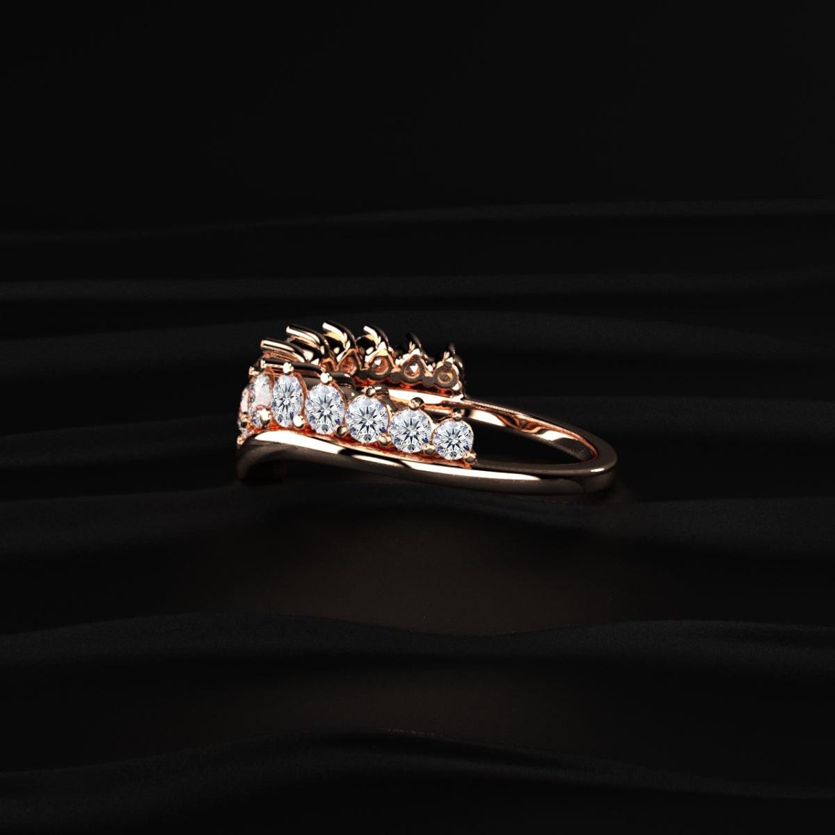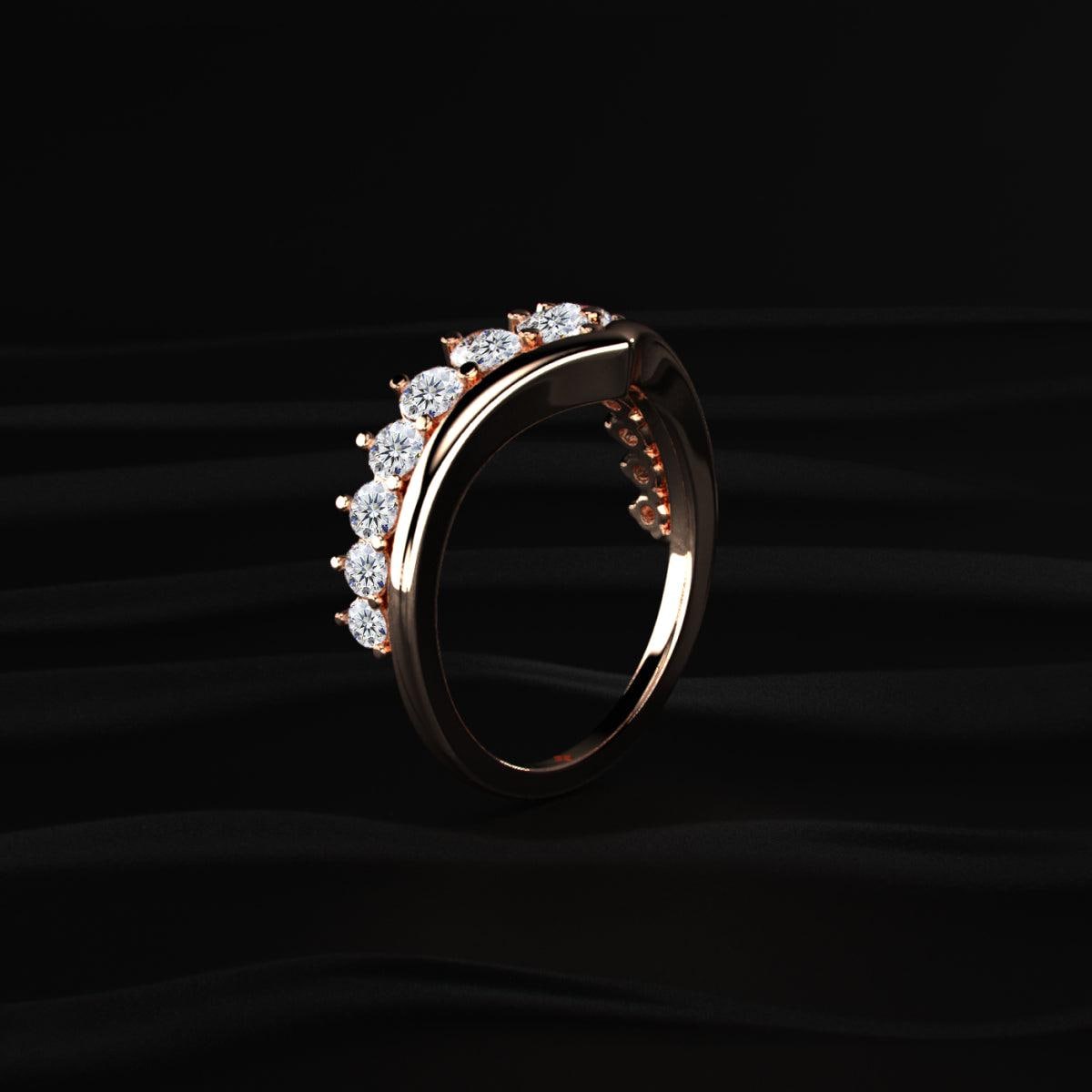 Designed with a graceful curved silhouette, this ring sits beautifully next to engagement rings or shines alone as a delicate statement piece.