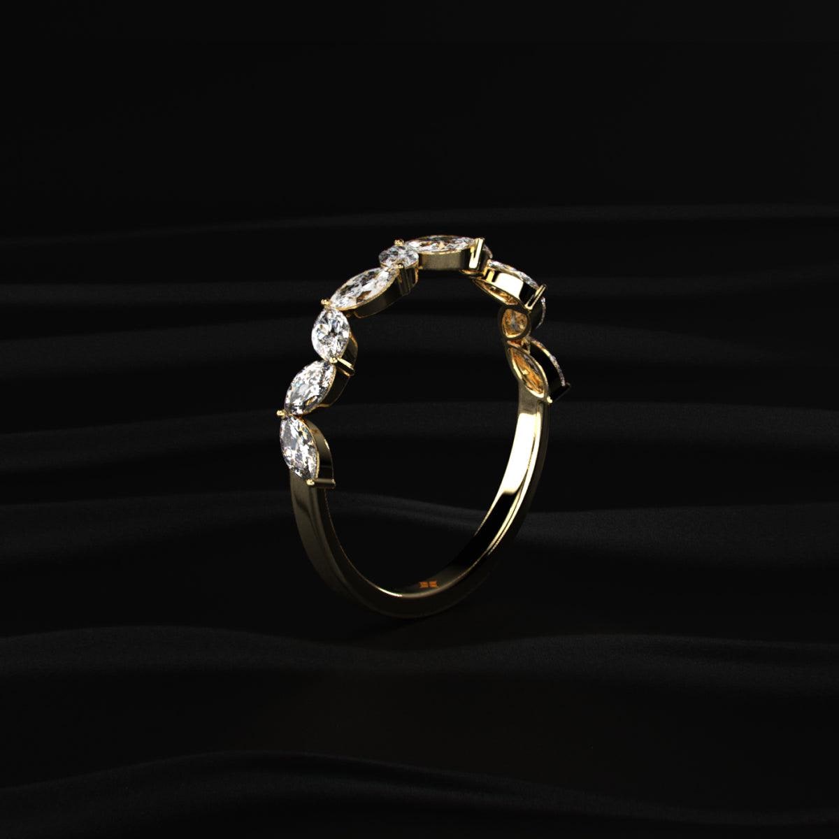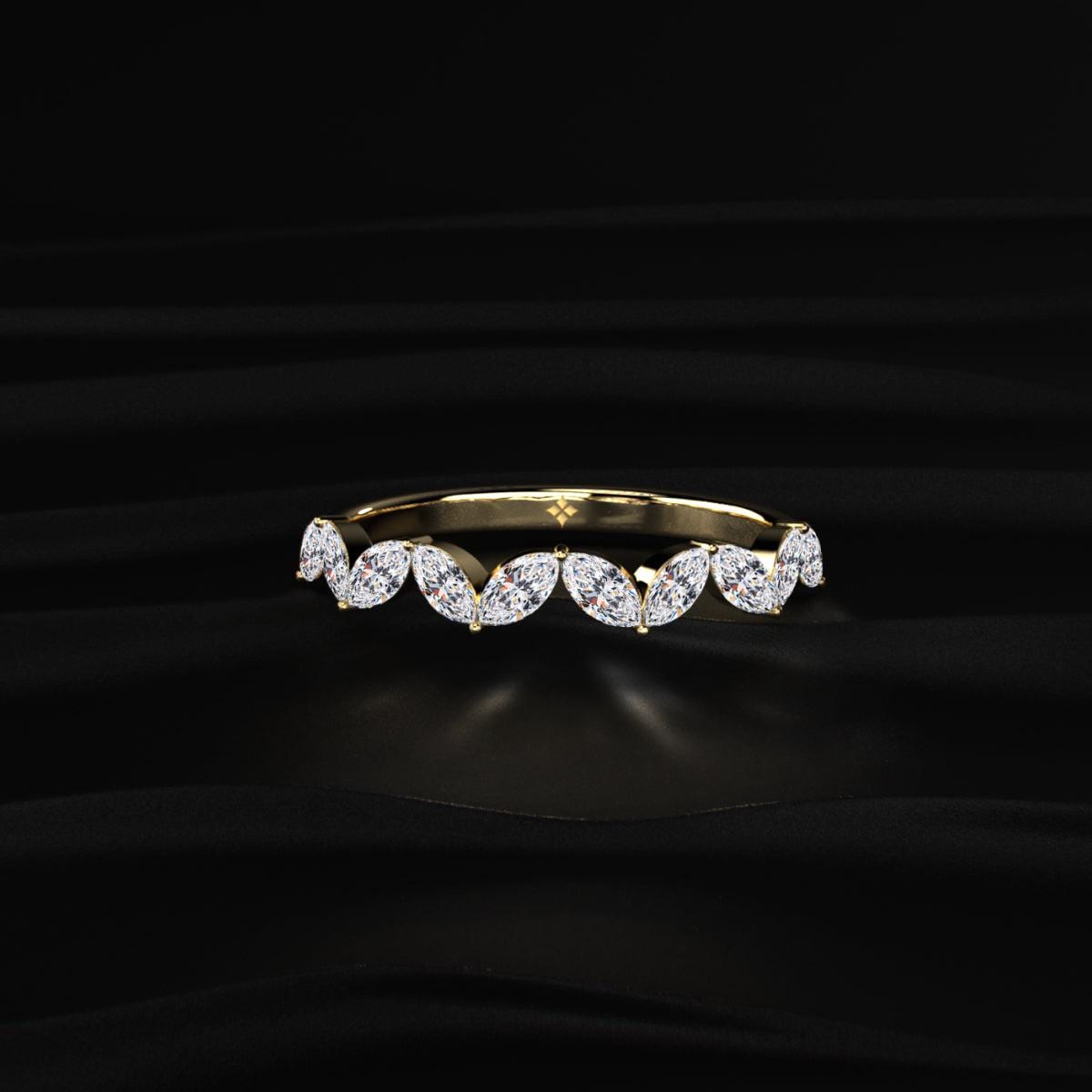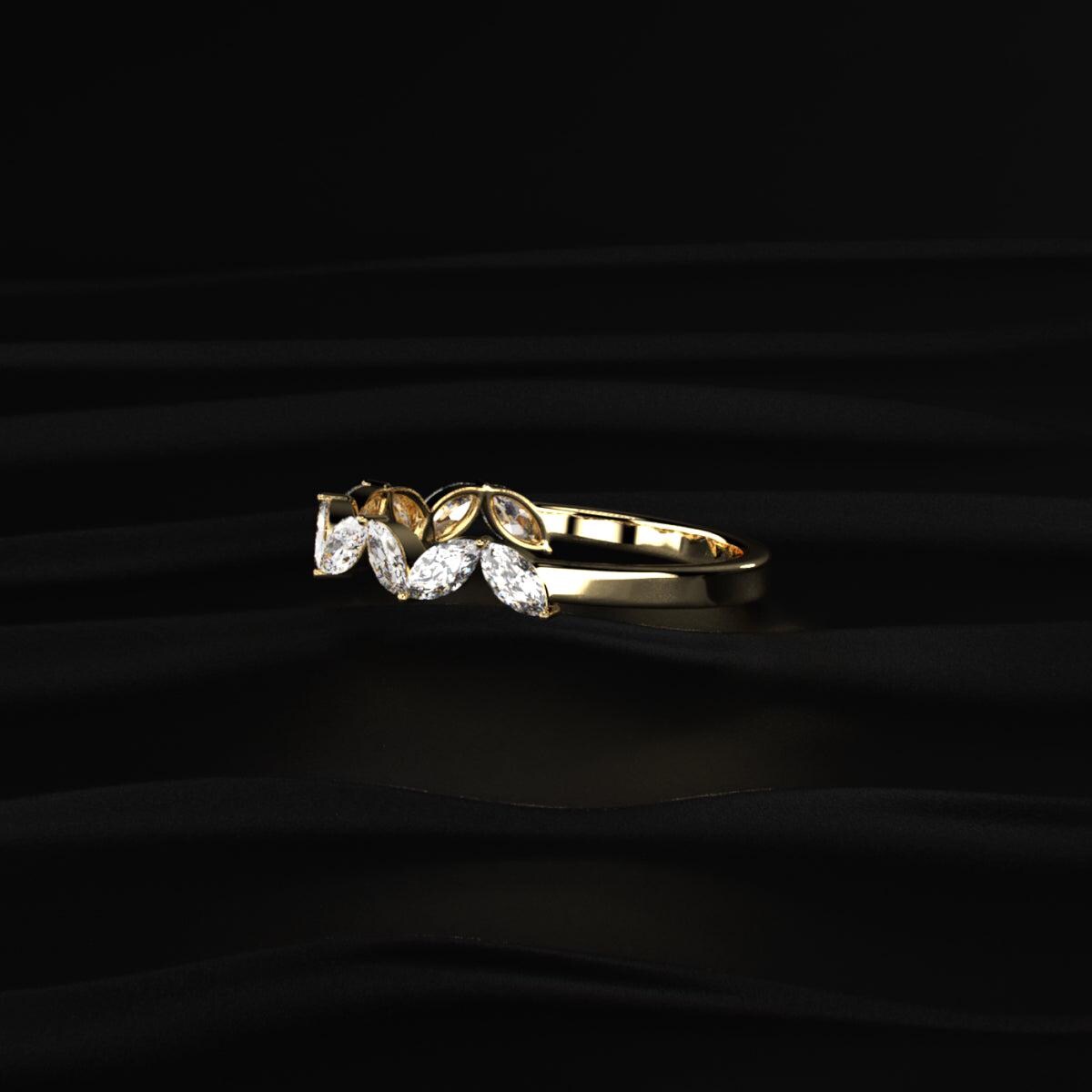 โจThis Marquise Cut Lab Grown Diamond Band features a delicate leaf-inspired design, creating a soft and elegant look.