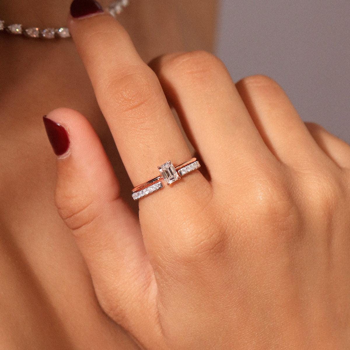 Open Diamond Band Ring, Minimalist Lab Grown Diamond Ring, Adjustable Gold Ring, Dainty Stacking Ring, Wedding Band Gift For Her