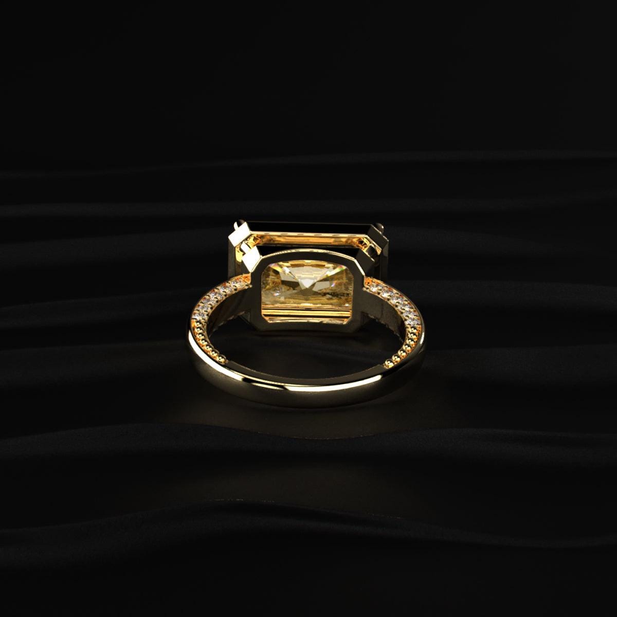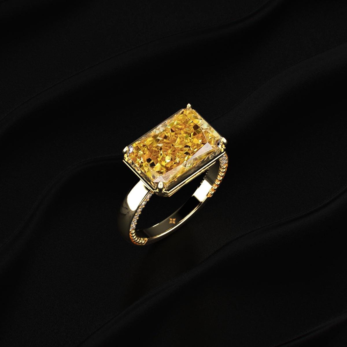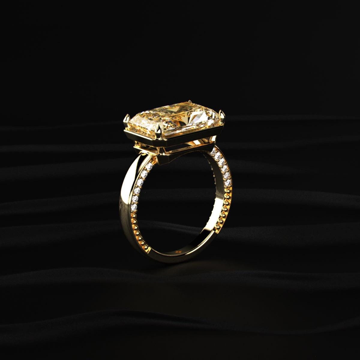 4.50 carat diamond ring, yellow radiant ring, bezel diamond ring, luxury engagement ring, statement diamond ring