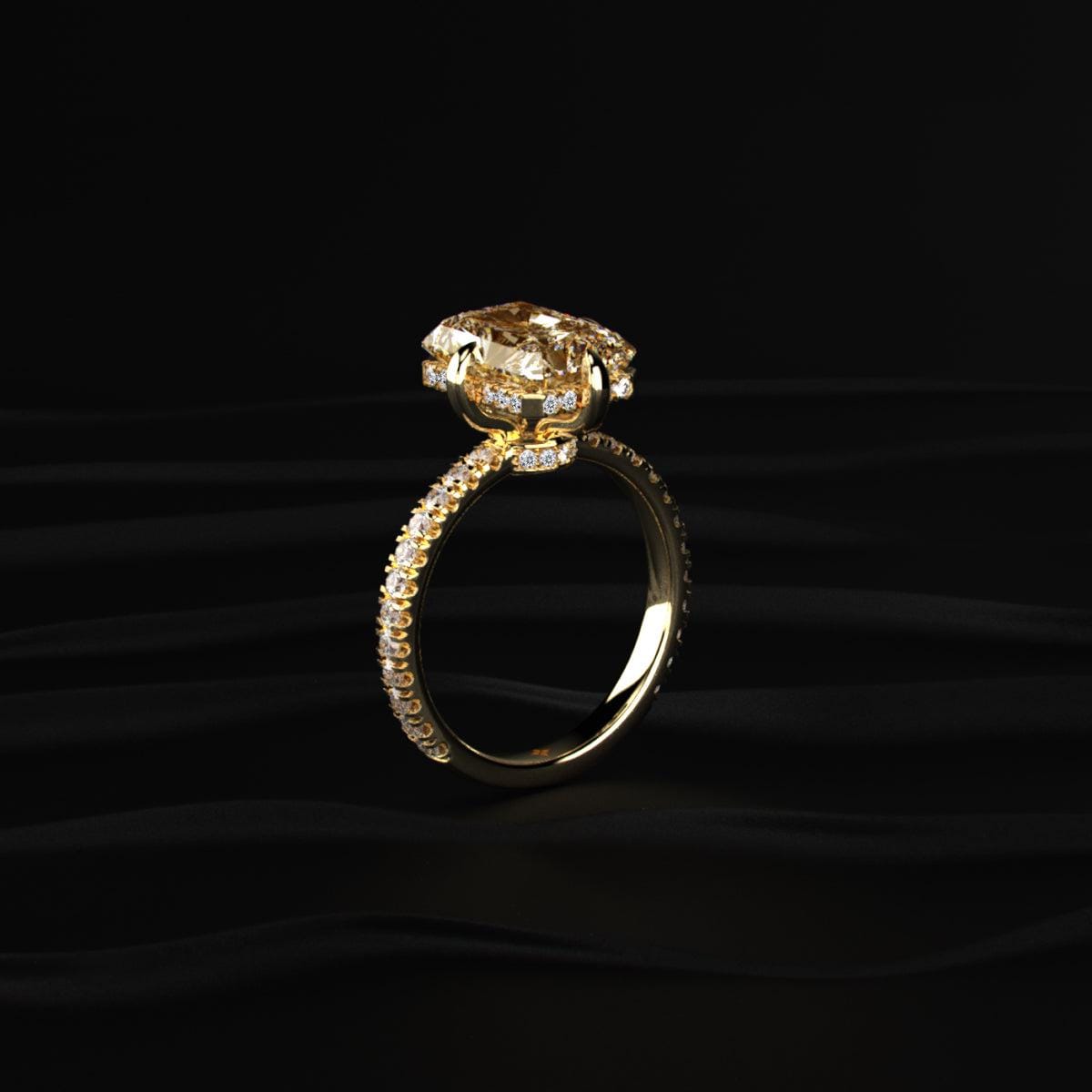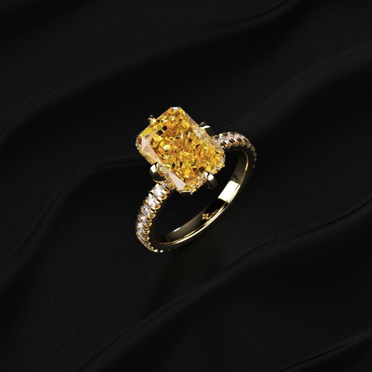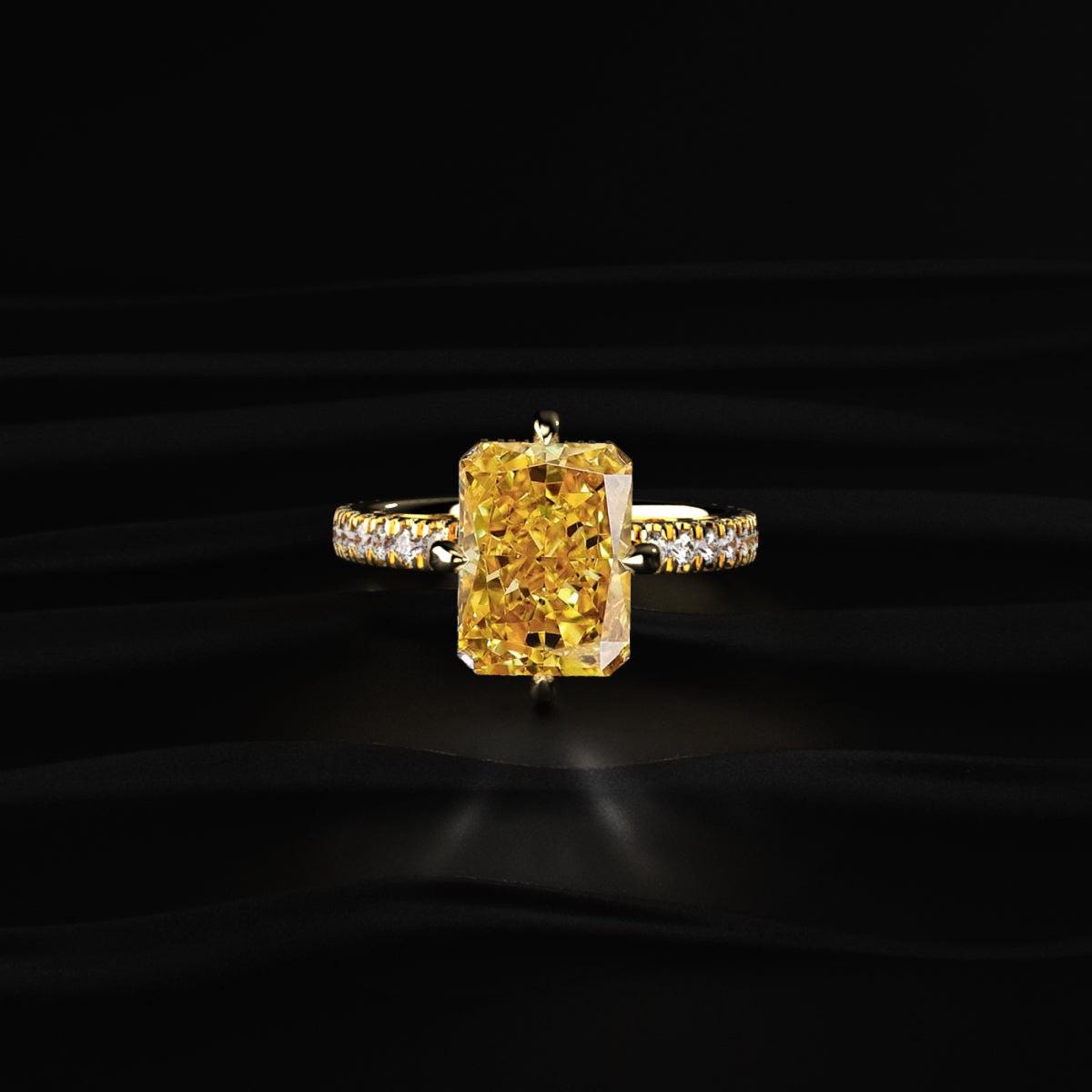 3.00 CT Yellow Radiant Diamond Ring, Pave Band Engagement Ring, Prong Set Gold Ring, Lab Grown Diamond Bridal Jewelry
