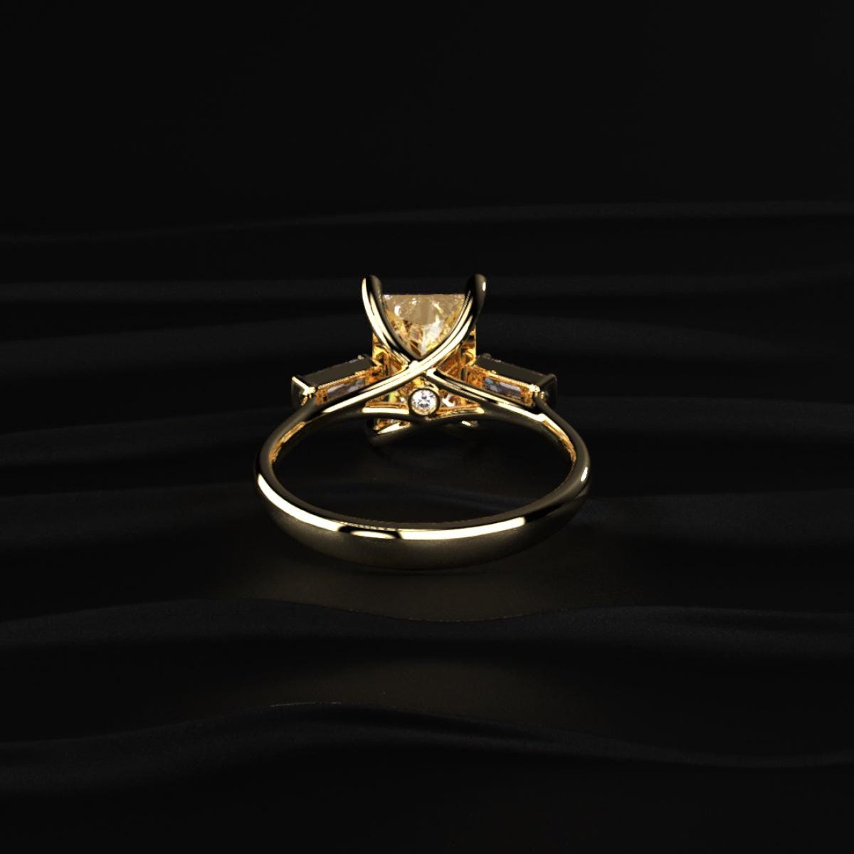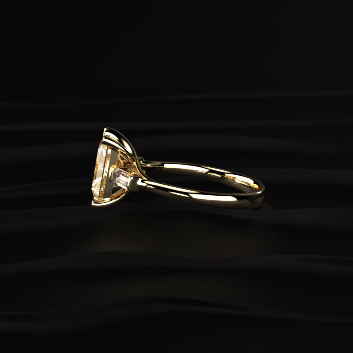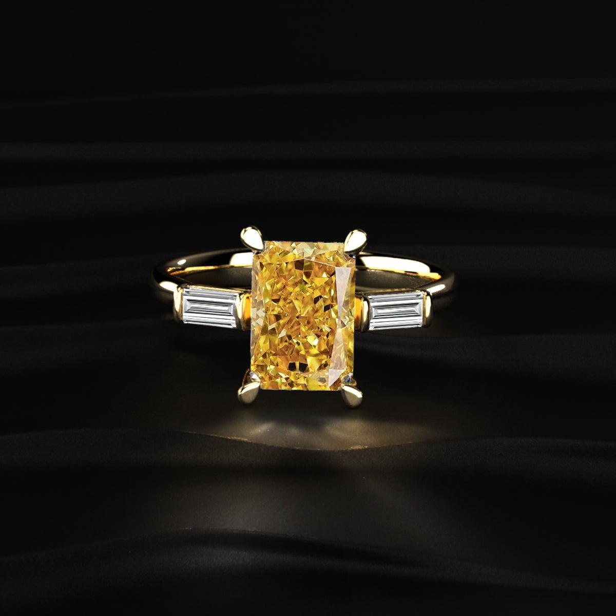 2.50 Ct Yellow Radiant Diamond Ring, Baguette Side Stone Engagement Ring, Prong Set Gold Ring, Lab Grown Diamond Jewelry