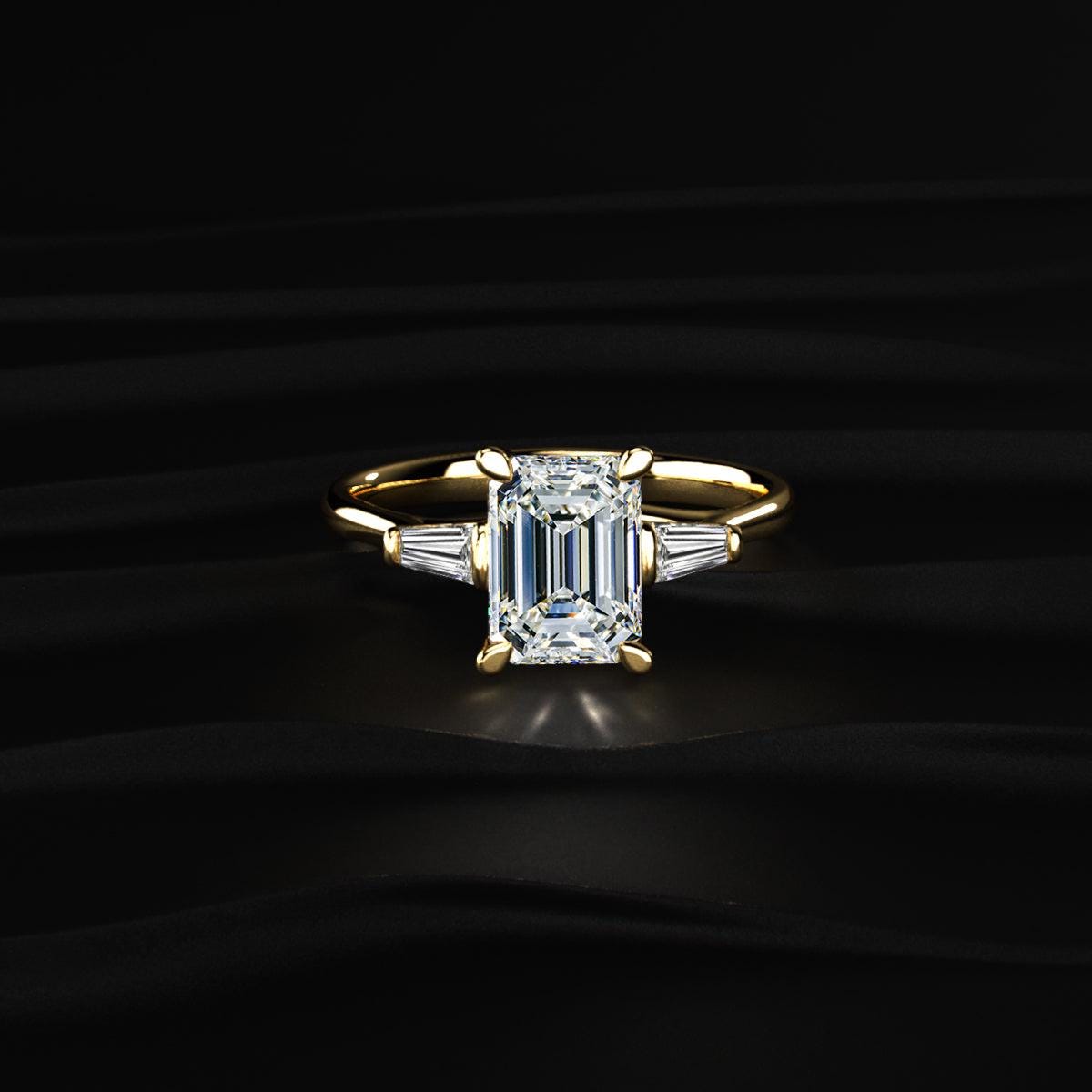 Emerald Cut Diamond Engagement Ring, Trapezoid Side Stone Ring, 3 Stone Gold Ring, Prong Set Lab Grown Diamond Ring