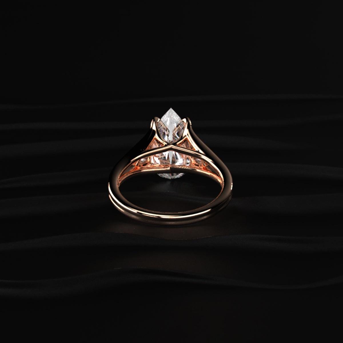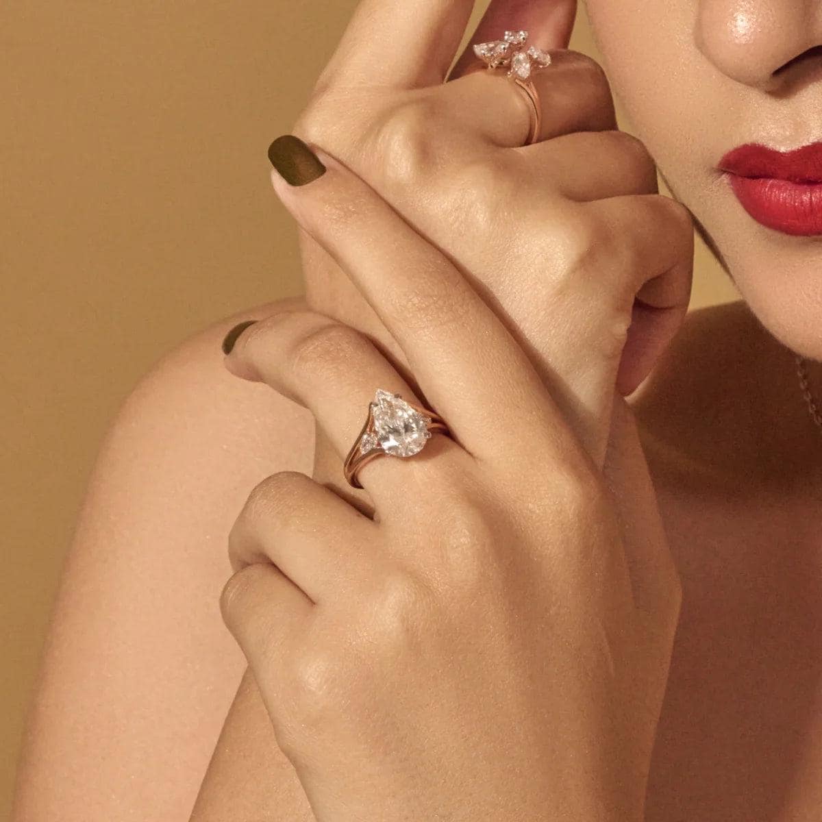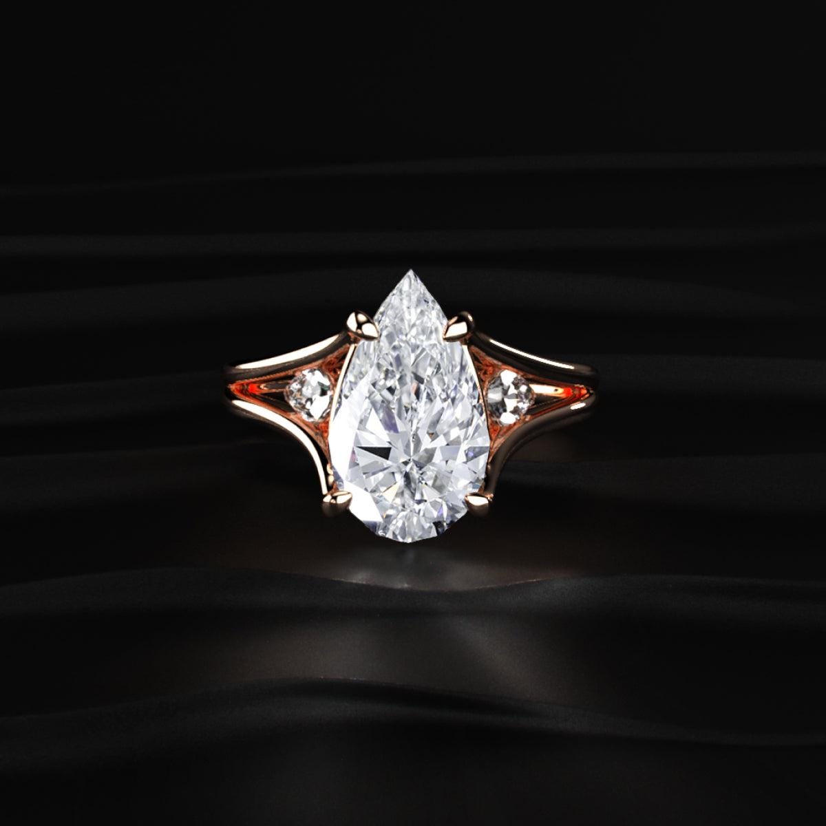 Pear Shape Diamond Engagement Ring, Split Shank Ring, Side Stone Diamond Ring, Rose Gold Bridal Ring, Lab Grown Diamond Ring