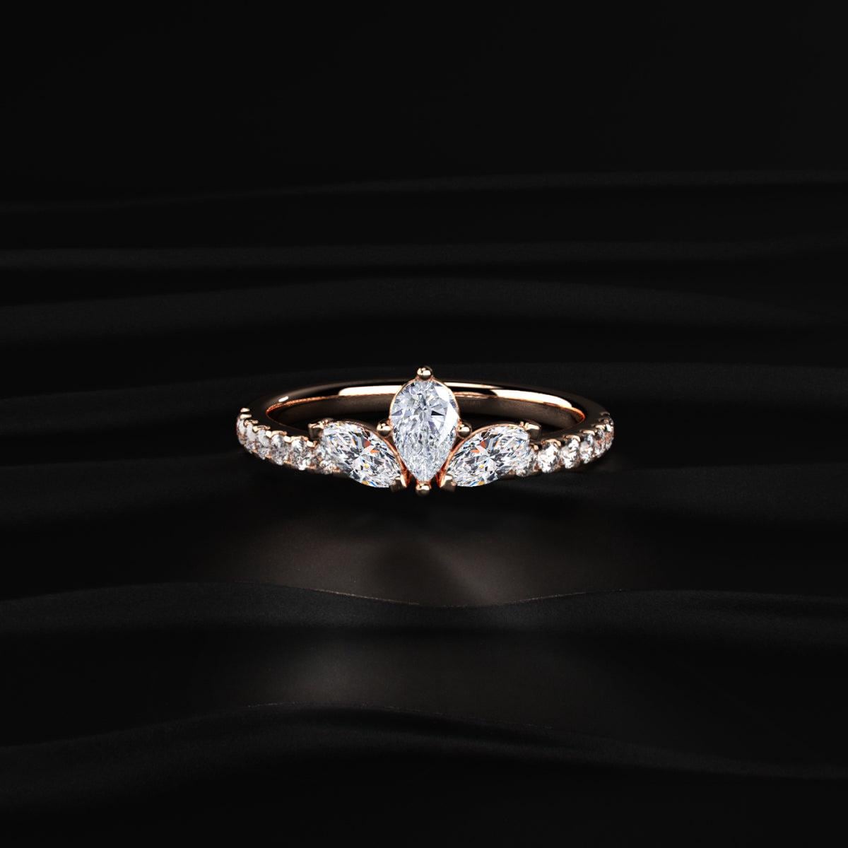 Marquise Diamond Engagement Ring, Three Stone Ring, Pave Band Ring, Lab Grown Diamond Ring, Dainty Bridal Ring Gift for Her