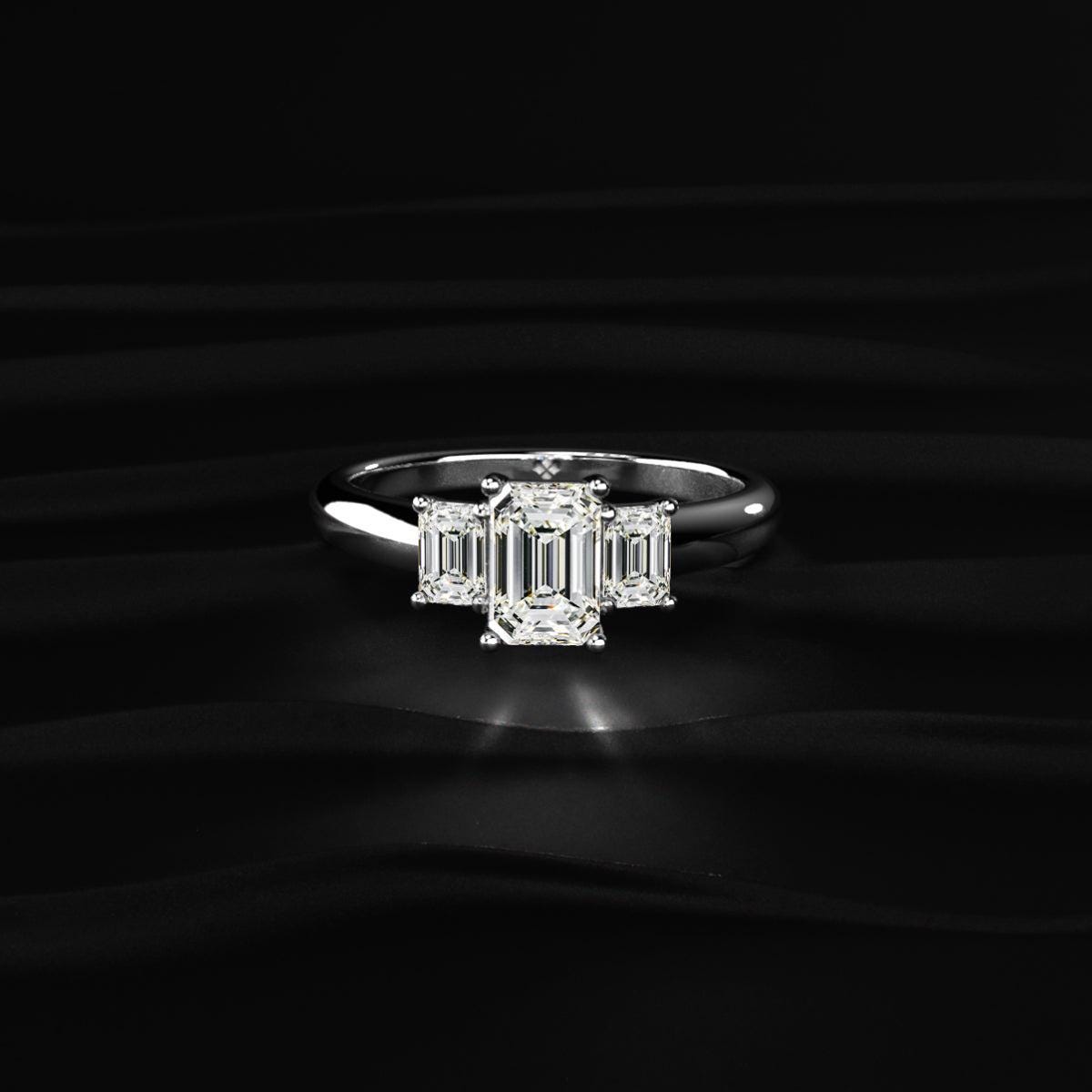 Emerald Cut Diamond Ring, Three Stone Engagement Ring, Lab Grown Diamond Ring, Step Cut Bridal Ring, Minimalist Wedding Gift