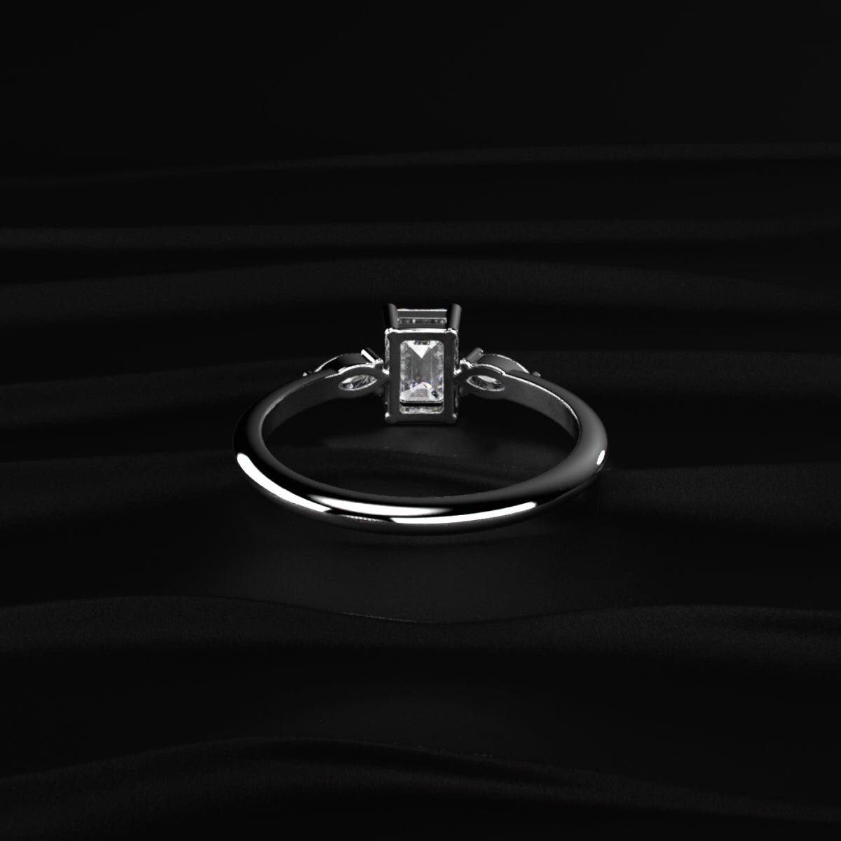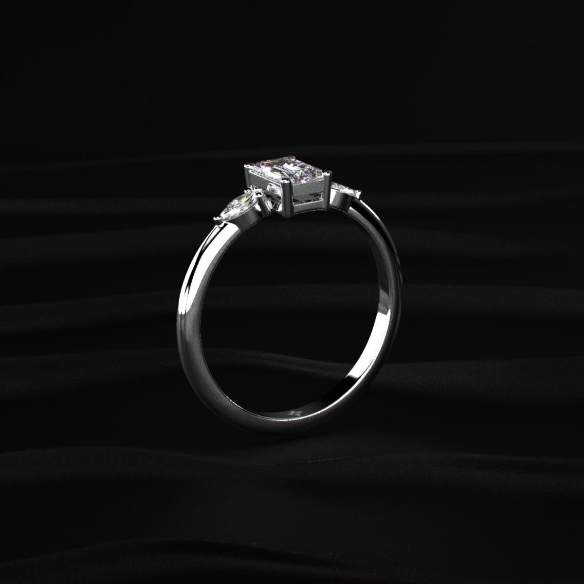 Emerald Cut Diamond Ring, Marquise Side Stone Ring, Three Stone Engagement Ring, Lab Grown Diamond Ring, Unique Bridal Ring Gift